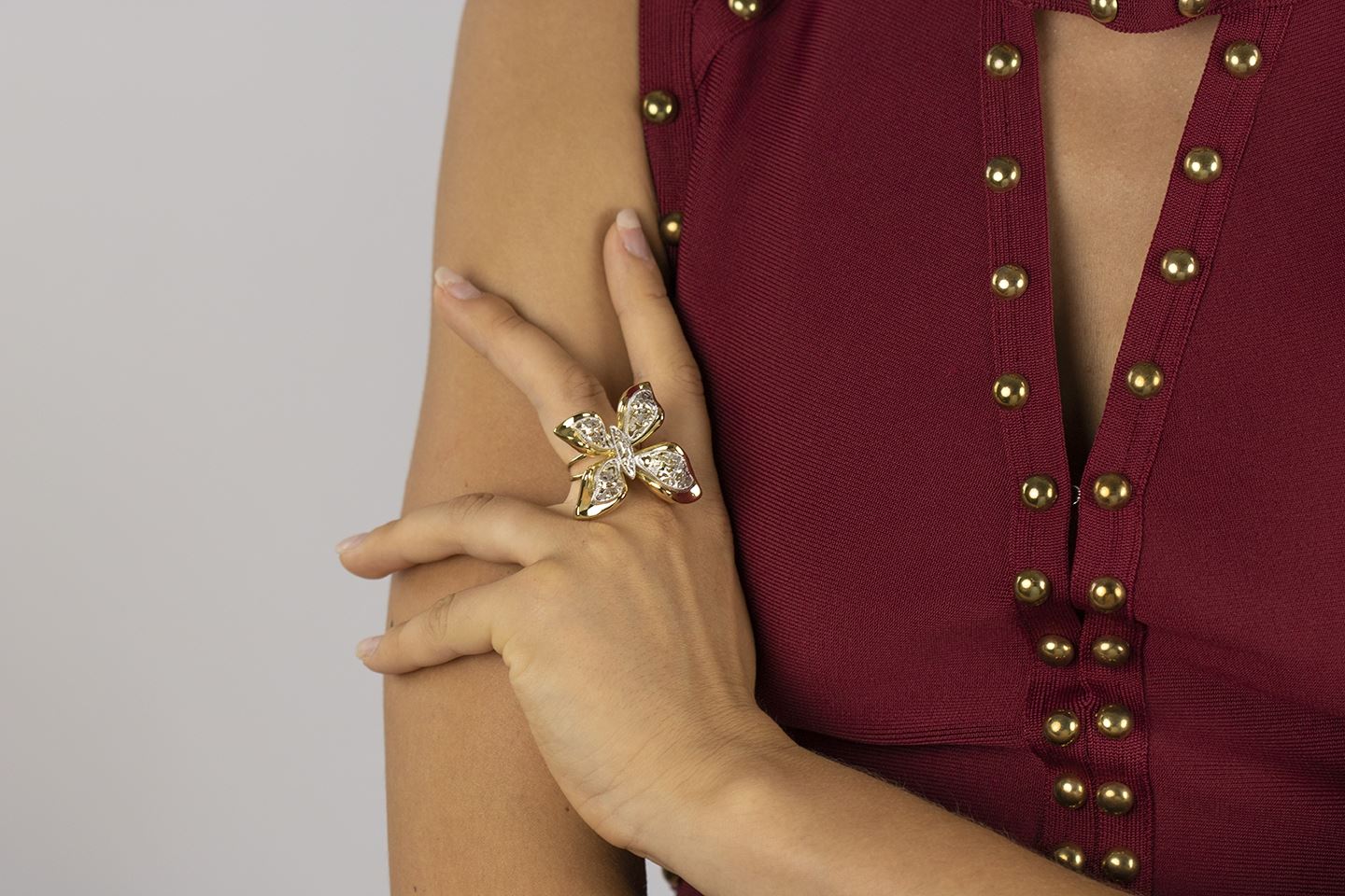 Großer Schmetterlingsring aus 18-karätigem Gelb- und Weißgold , aus der Schmetterlingskollektion, handgefertigt in reiner Handarbeit aus 750% Gelbgold und 750% Weißgold – ein kostbares Schmuckstück, das Sie begeistern wird.
