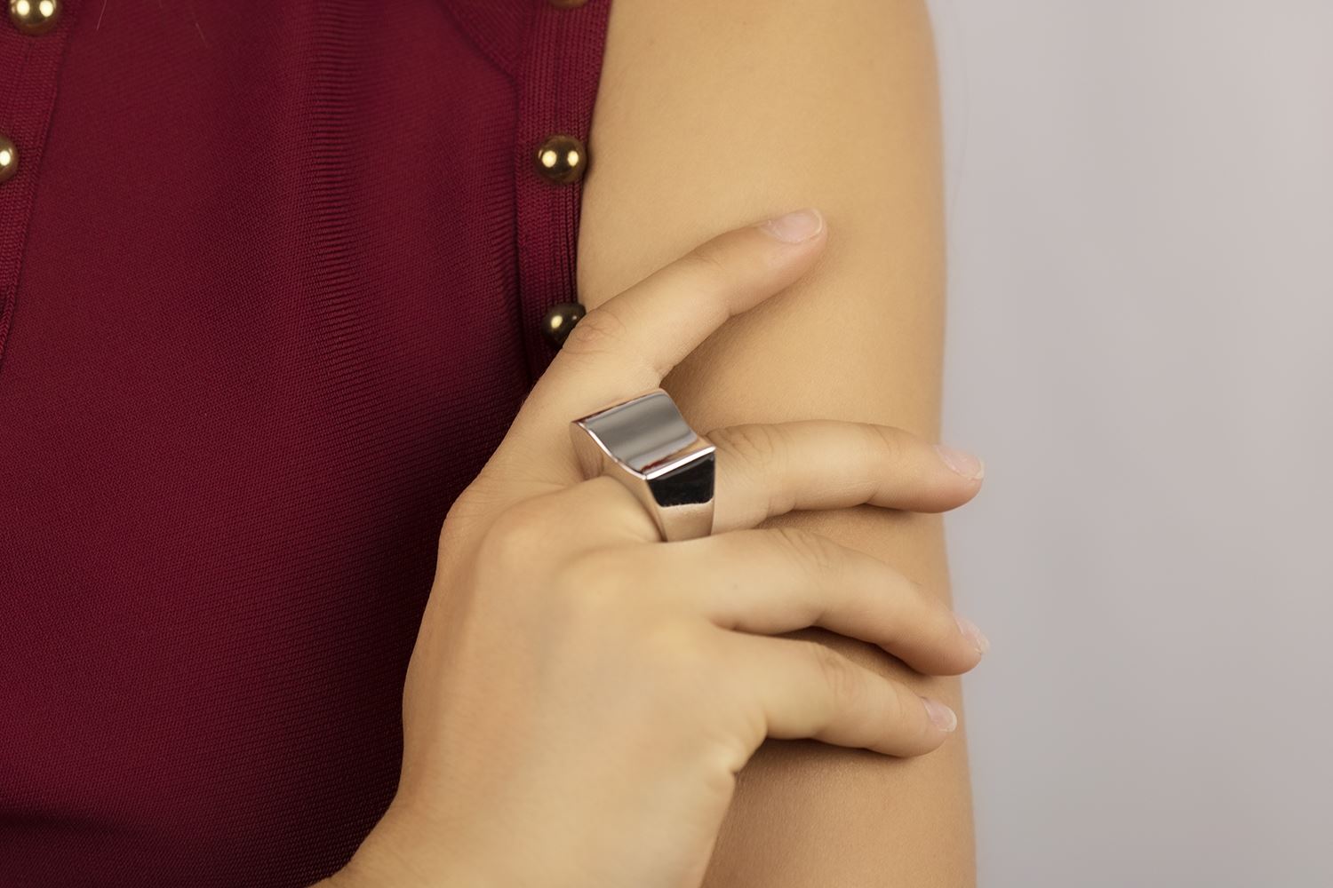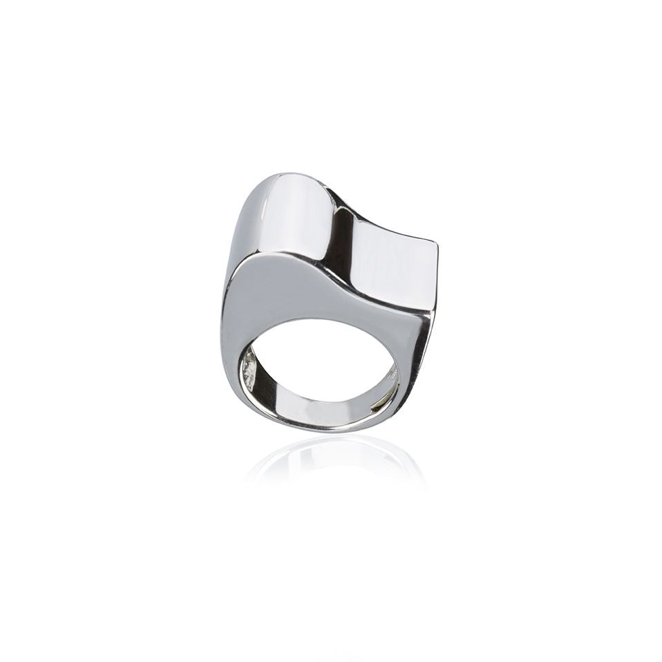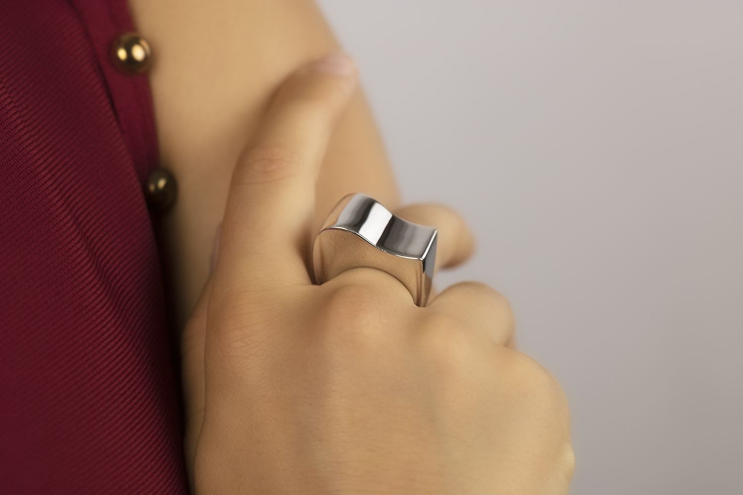 Ring aus der Waves-Kollektion, handgefertigt aus 925er Silber mit Rhodium-Finish, ein besonderer Ring mit beweglichen Formen und einzigartigem Design und Handwerkskunst aus Italien.