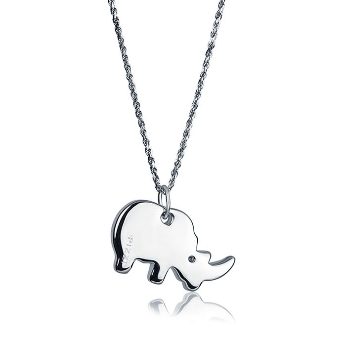 Halskette aus 18-karätigem Weißgold mit Nashorn-Anhänger