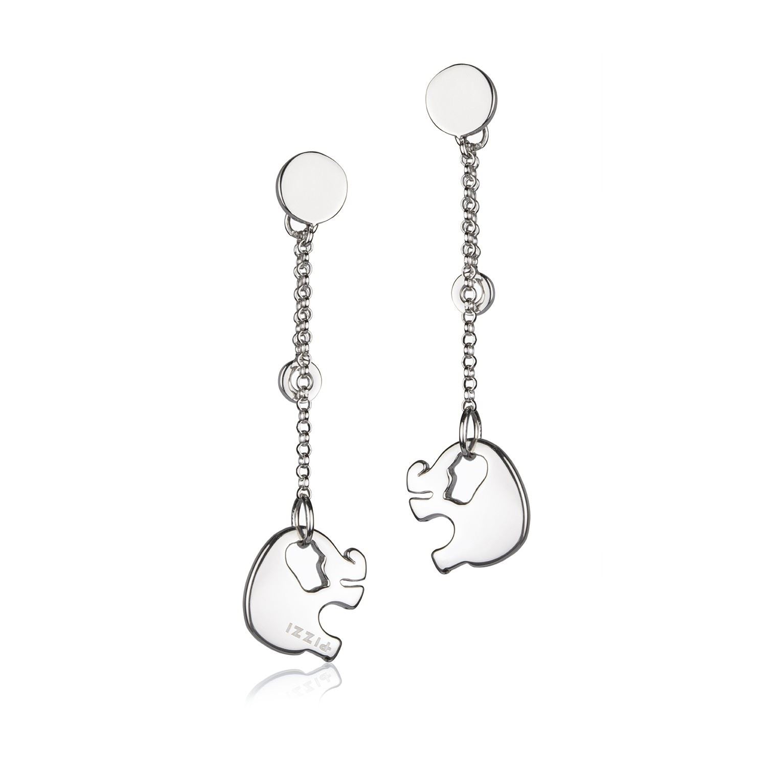 Ohrhänger mit Elefantenanhänger aus Silber , Kollektion Tiere, handgefertigt aus 925er Silber mit Rhodium-Finish, hergestellt in Italien.