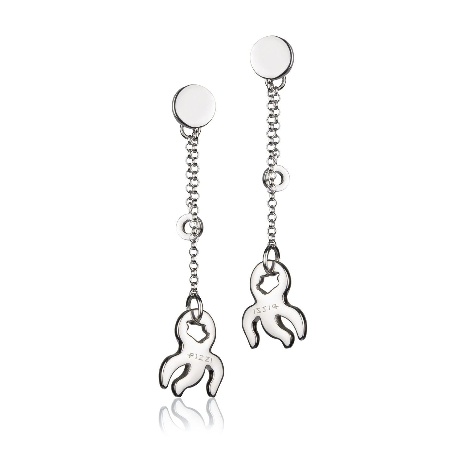 Silberne Kettenohrringe mit Oktopus-Anhänger, Kollektion Tiere, handgefertigt aus 925er Silber mit Rhodium-Finish, hergestellt in Italien.