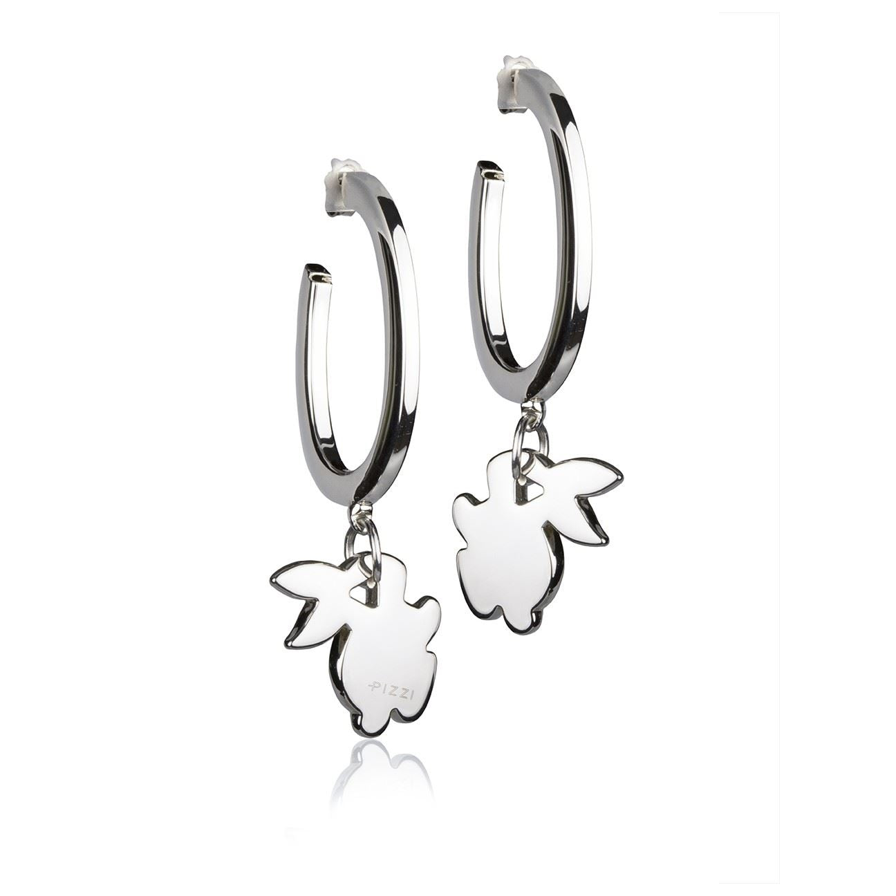 Hasenanhänger-Ohrringe aus Silber , Kollektion Tiere, handgefertigt aus 925er Silber mit Rhodium-Finish und hypoallergener 333er Goldnadel, hergestellt in Italien.