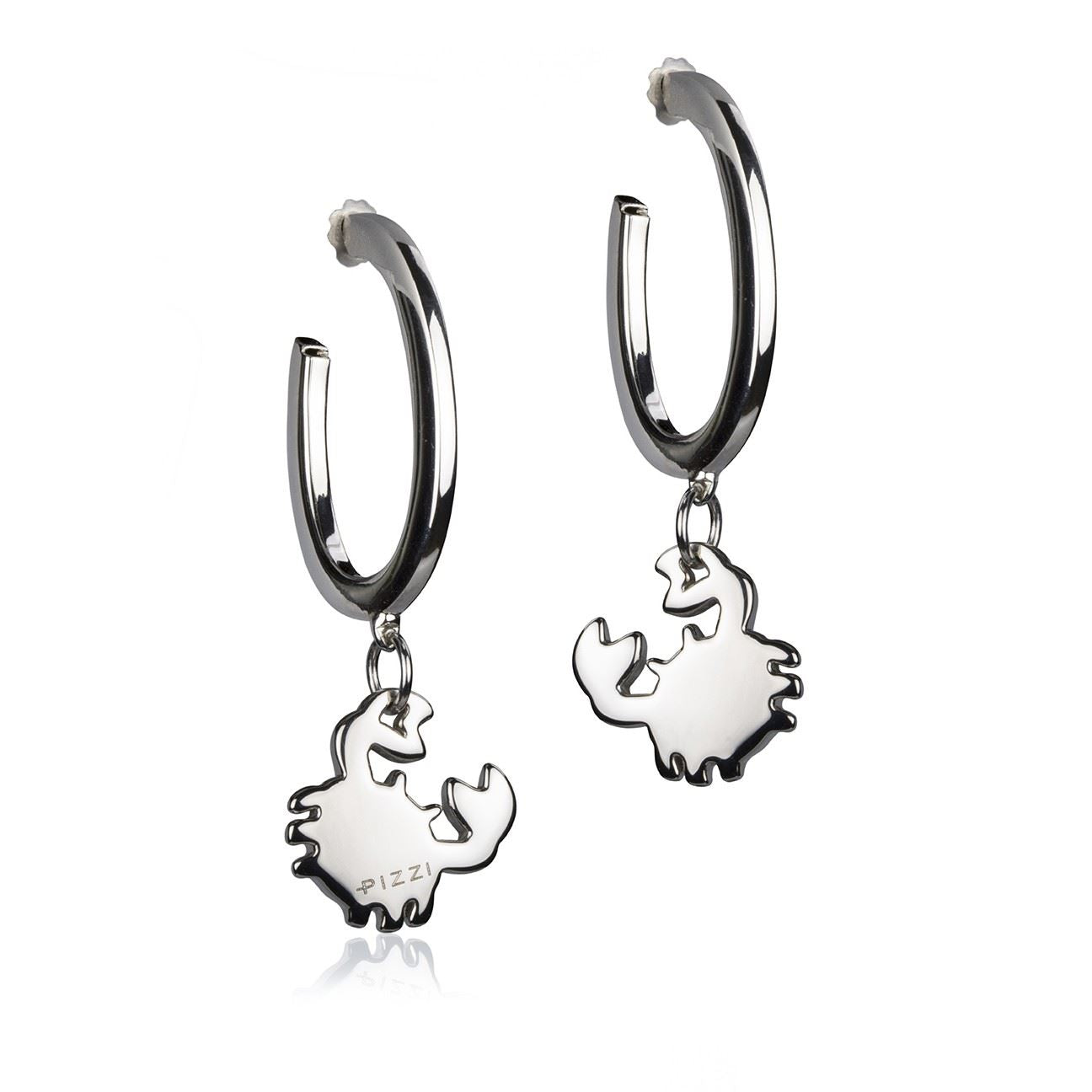Silberne Krabben-Ohrringe , Kollektion Tiere, handgefertigt aus 925er Silber mit Rhodium-Finish und hypoallergener 333er Goldnadel, hergestellt in Italien.