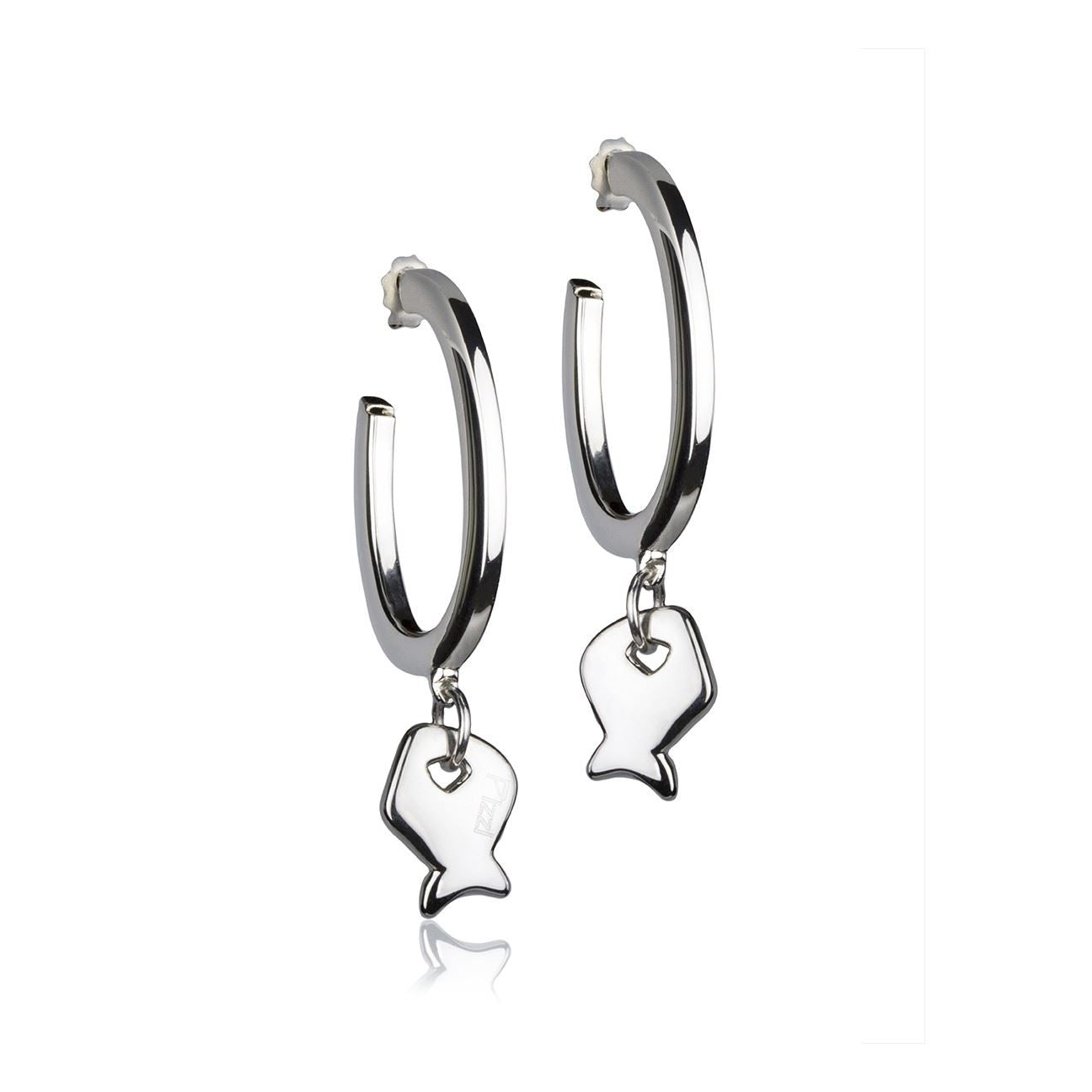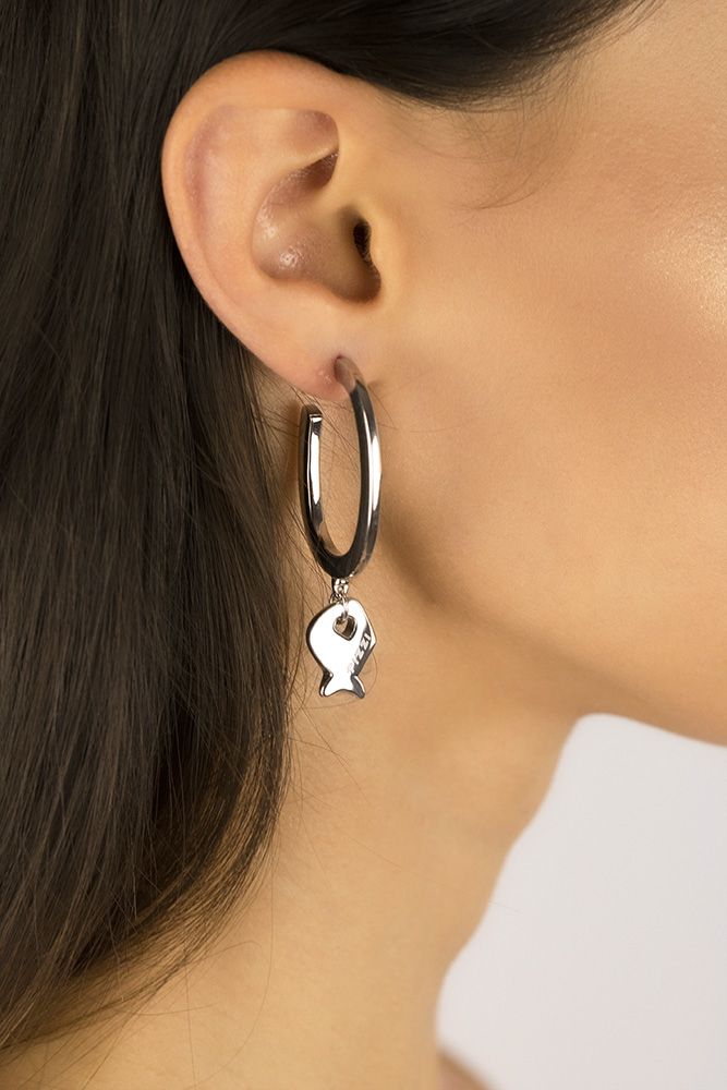 Silberne Creolen mit Fischanhänger