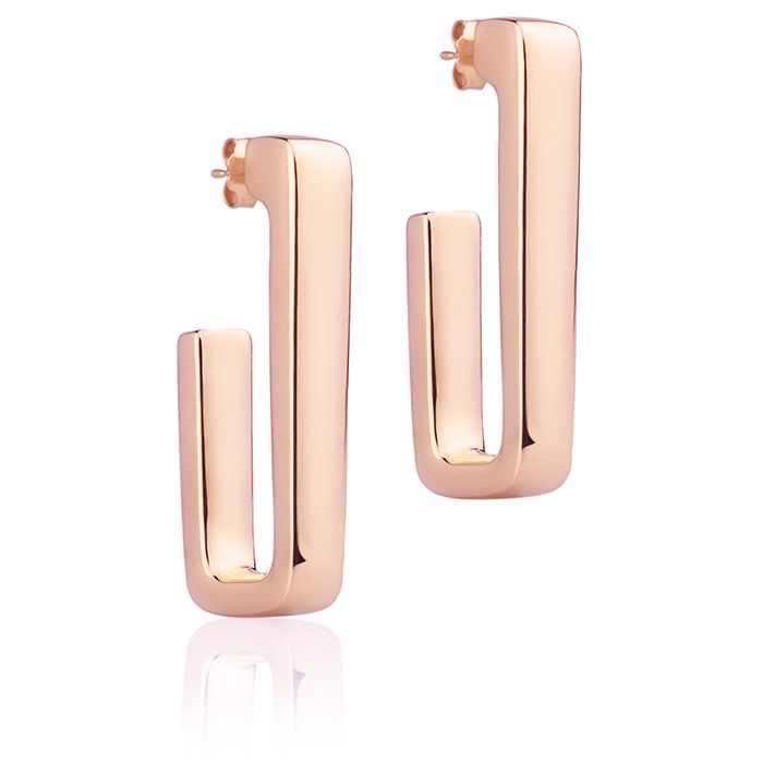 18k rose gold rectangular earrings, 45mm long