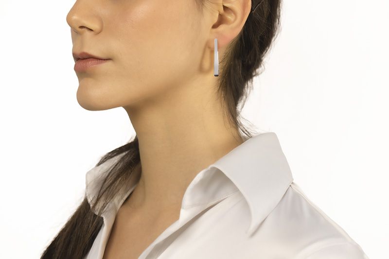 18k white gold oval earrings, square section, length 30mm