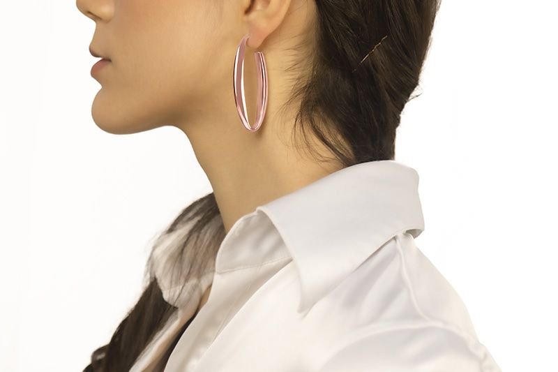 18k rose gold oval earrings with a triangular section, length 60mm