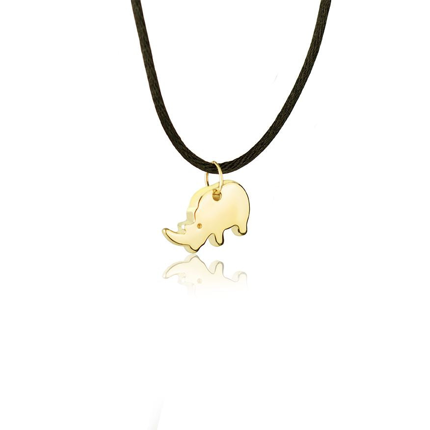 18kt Yellow Gold Rhinoceros Animals Pendant with Lace