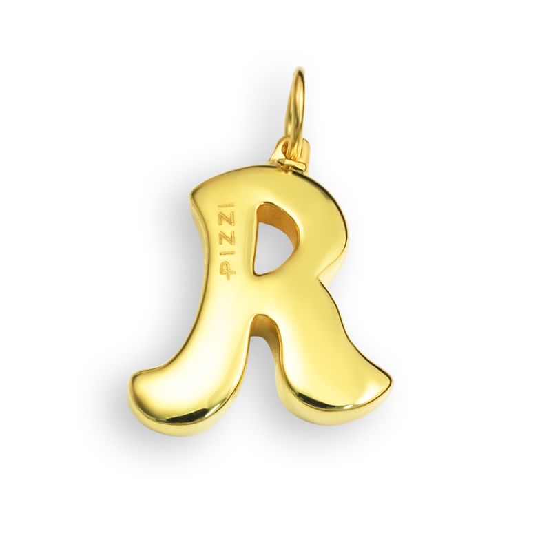 Pendant with initial lace letter R in 18kt yellow gold