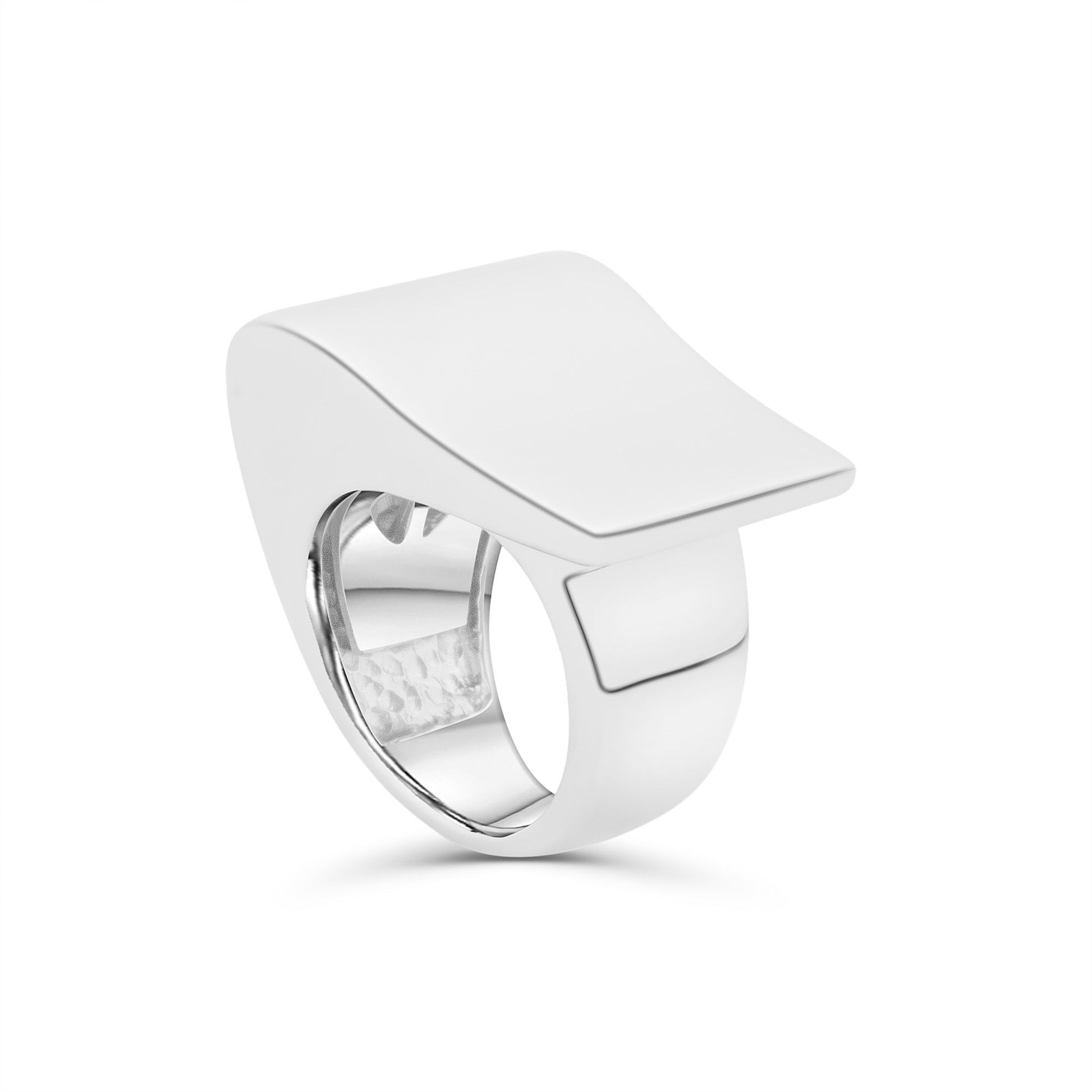Anello collezione Onde realizzato con lavorazioni artigianali in argento a titolo 925%° con finitura rodiata ,creano degli oggetti particolari con movimenti e forme dal design unico ed artigianalità made in italy.