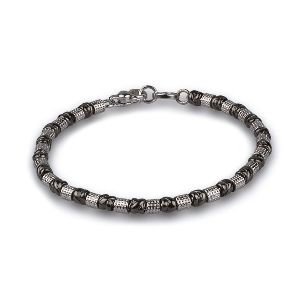 Bracciale in argento sterling a titolo 925%° rodiato e rutenio disponibile per polsi da misura 16 a 23 cm.