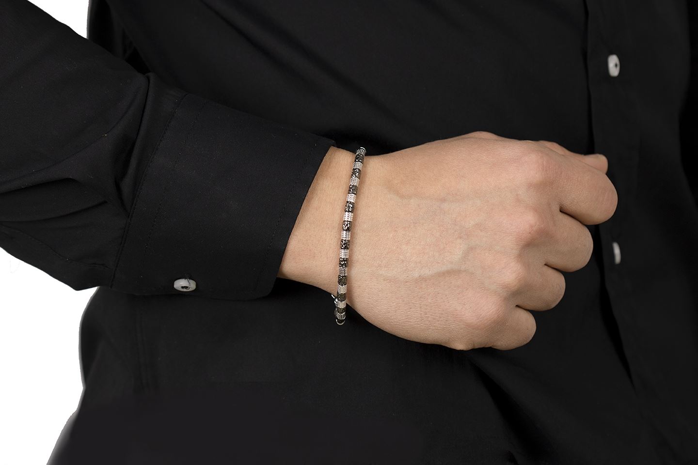 Bracciale in argento sterling , a titolo 925%° rodiato e rutenio disponibile per polsi da misura 16 a 23 cm.