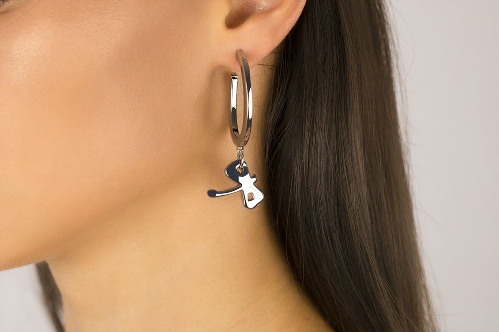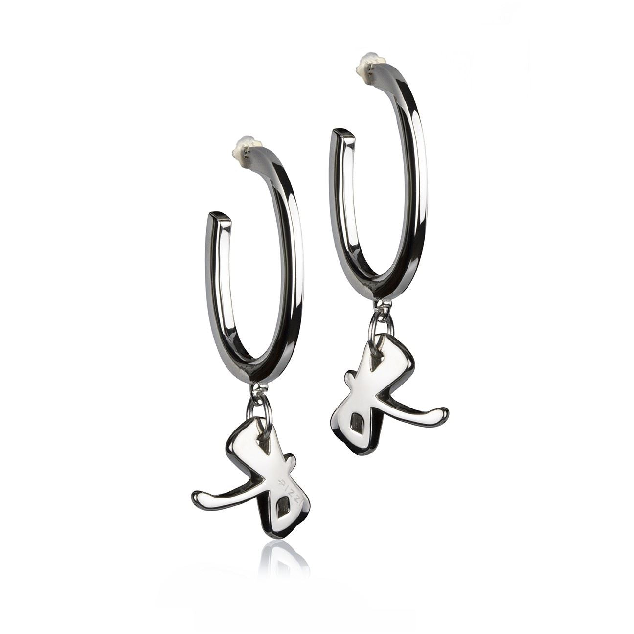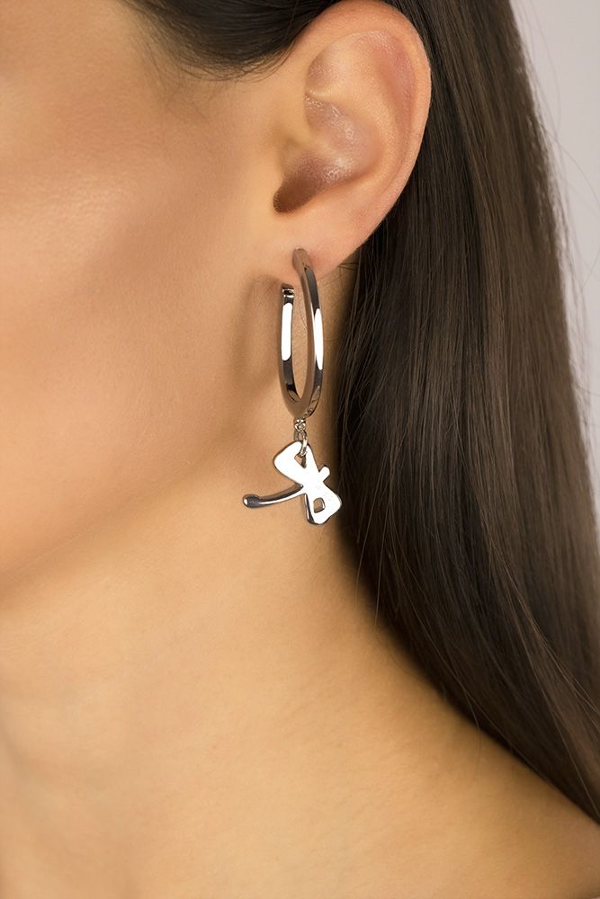 Orecchini in Argento a Cerchio Pendente Libellula , collezione Animals realizzati artigianalmente in argento a titolo 925%° con finitura rodiata e perno in oro anallergico a titolo 333%° , made in italy.