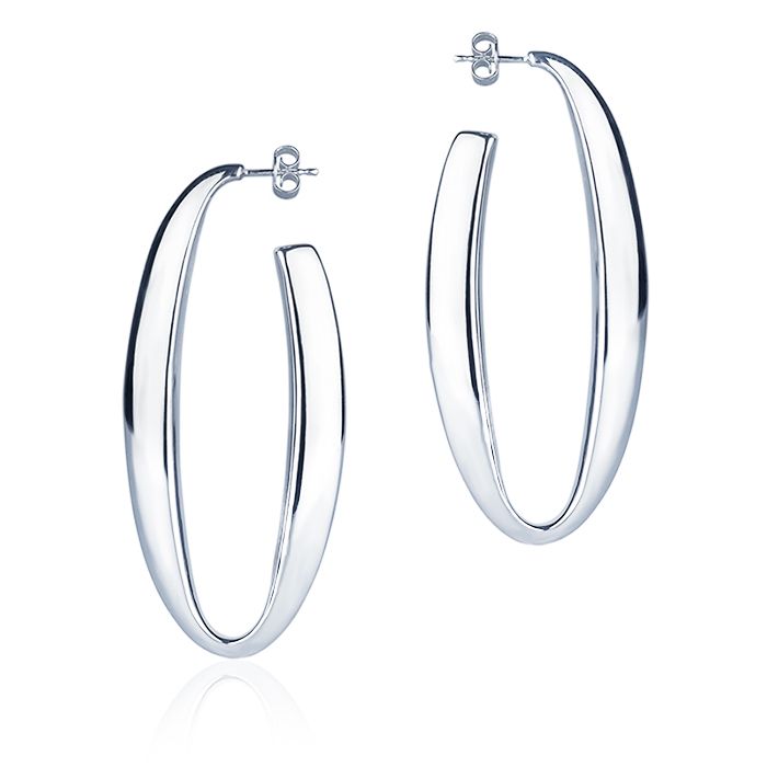 Orecchini ovali in oro bianco 18k sezione triangolare lunghezza 60mm , creati utilizzando manualità artigianale abbinata a moderni processi produttivi realizzati nei nostri laboratori , stile unico ed esclusivo di artigianalità made in italy .
