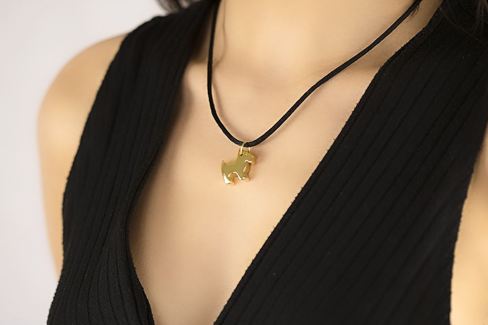 Pendente animals Cane in Oro giallo 18kt con laccio , collezione Gold Animals in oro giallo a titolo 750%, realizzato con tecniche e lavorazioni artigianali ● Made in Italy.